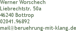 Inhaltlich Verantwortlicher gemäß § 6 MDStV: Werner Worschech